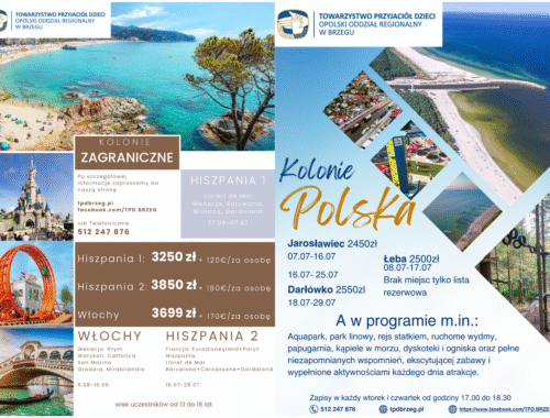 Drodzy Rodzice i Opiekunowie, Informujemy, że karty kwalifikacyjne na kolonie organizowane przez Towarzystwo Przyjaciół Dzieci w Brzegu są już dostępne na naszej stronie internetowej. Wszystkich zainteresowanych prosimy o pobranie i wypełnienie karty, która jest niezbędna do zgłoszenia dziecka na letni…